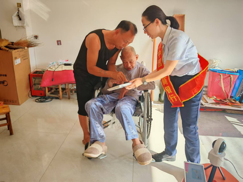张大爷年逾八旬,因腿脚行动不便,日常出行主要依靠轮椅。近期,他不慎忘记了社保卡密码,无法取用养老金和就医结算,这让他和家人焦急万分。得知工行兴义望谟支行提供特殊客户上门服务后,其子女通过电话预约求助。望谟支行迅速响应,立即启动“特需客户绿色通道”。预约当日下午,望谟支行立即派出两名员工携带设备准时抵达张大爷家中进行核实办理。工作人员耐心了解其具体需求,并引导张大爷在外派设备上亲自办理了密码重置业务。